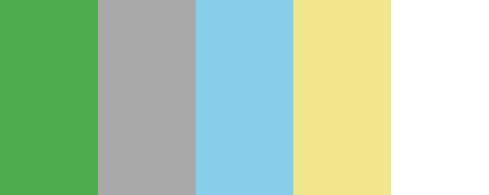 This palette captures the essence of Game Boy Luigi with a vibrant green as the main color, complemented by nostalgic Game Boy gray, a refreshing sky blue, a classic yellow for some brightness, and a vibrant white for contrast.