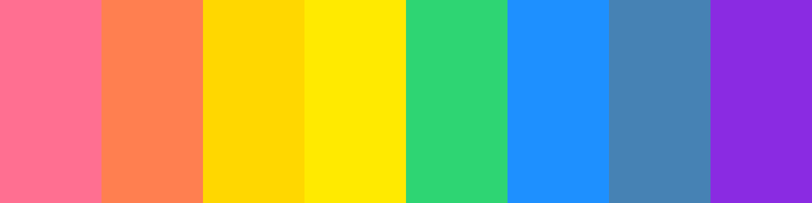 Here is a color palette inspired by SpongeBob and Patrick, sorted by hue: