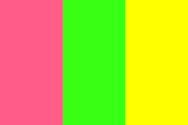This palette captures the energetic and playful spirit of the 90s with bright, fluorescent colors. The Fluorescent Pink, Neon Green, and Electric Yellow create a striking contrast against a blue background, reminiscent of the bold fashion and graphic designs of that era.