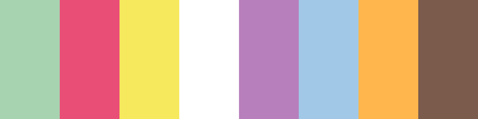 This palette includes colors that represent the main characters and their personalities, resulting in a fun and lively mix.