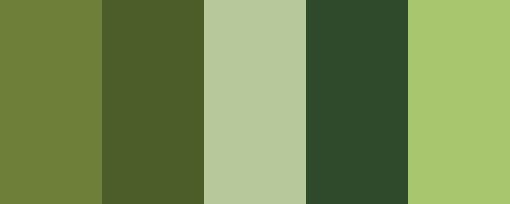 Based on the provided color code #6E7F3A , I created a color palette that complements this earthy green tone.