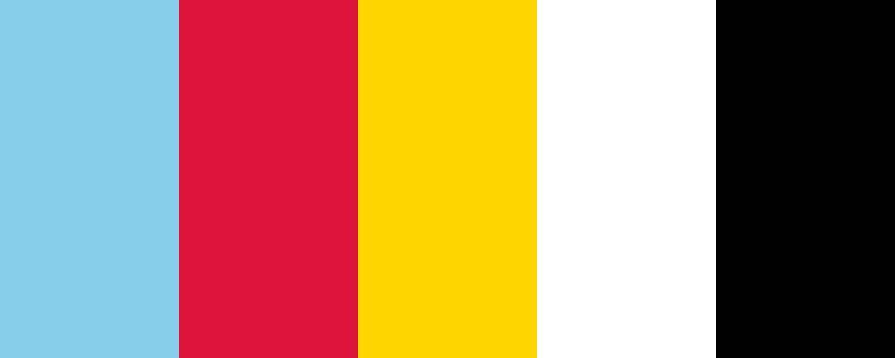 This palette combines a vibrant sky blue and crimson red, reminiscent of classic cartoon characters, along with sunny yellow for a cheerful accent, bright white for contrast, and jet black for outlines or details.
