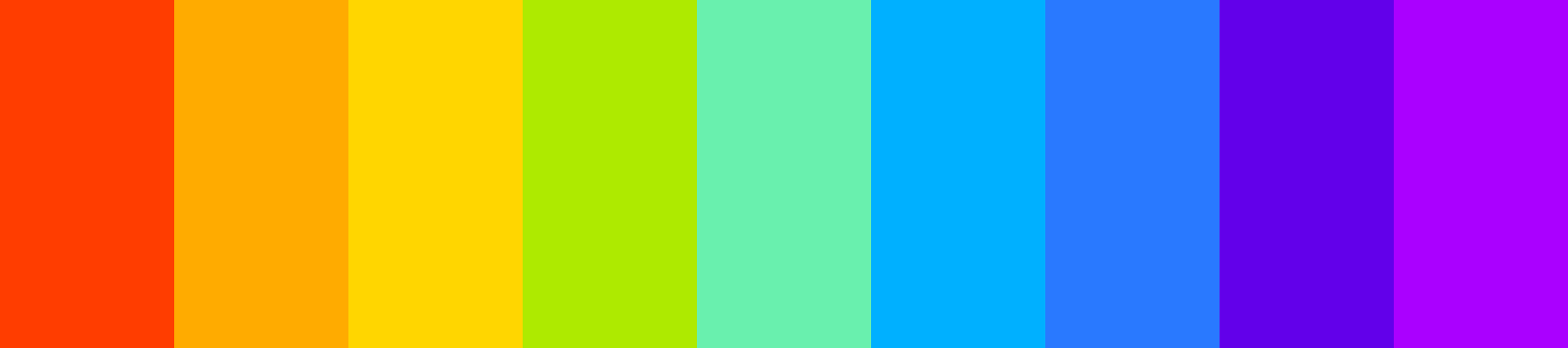 Here is a vibrant color palette inspired by the 1970s rainbow, featuring nine distinct colors sorted by hue: