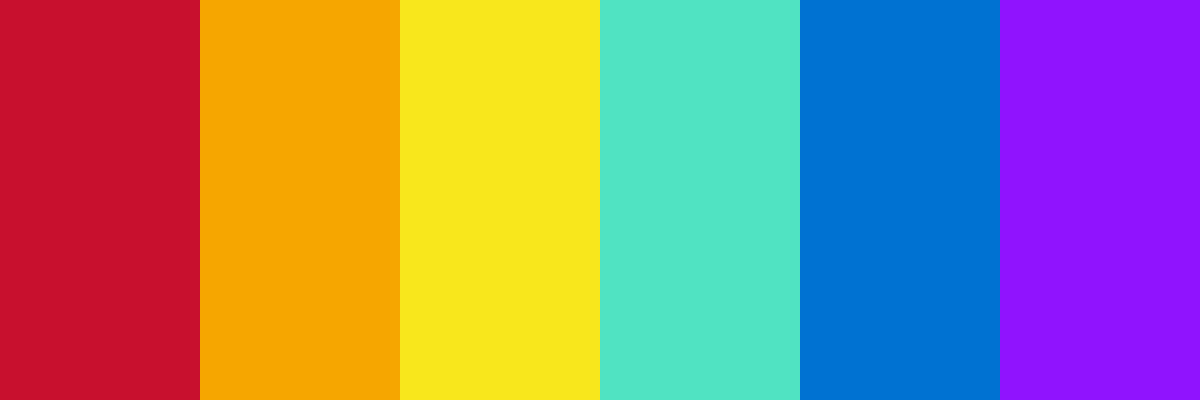 Here is a color palette inspired by the saturated NBC logo from 2010, consisting of six vibrant colors: