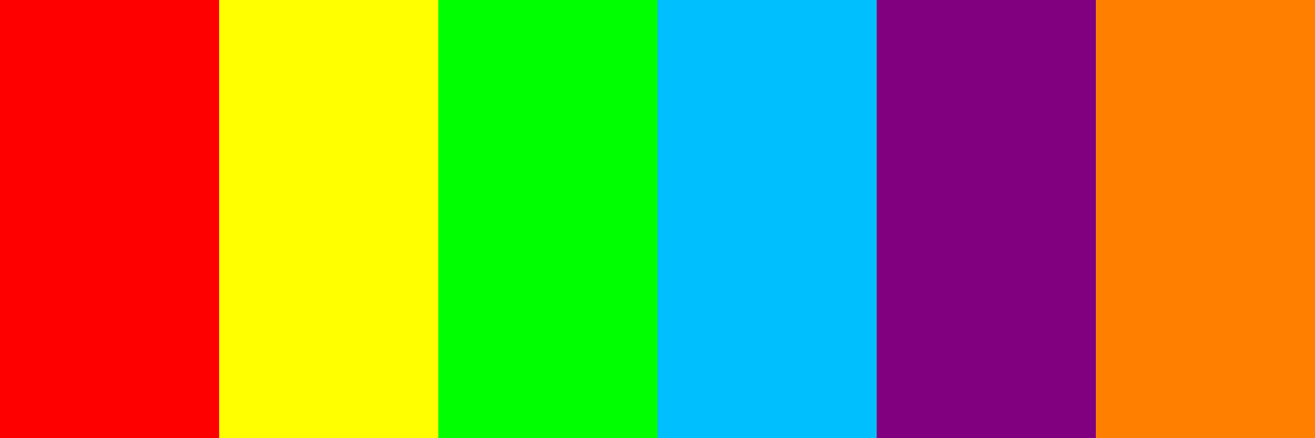 Here is a vibrant color palette inspired by the Childish NBC logo from 2010, featuring six distinct colors: