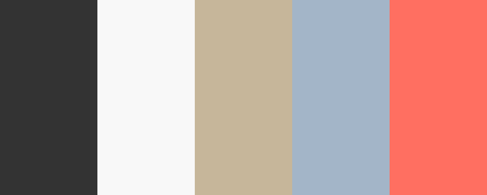 This palette features a sophisticated combination of deep charcoal for text, soft white for background, muted gold for highlights, dusty blue for accents, and coral red for attention-grabbing elements. It balances elegance with a contemporary feel, perfect for showcasing typographic art.