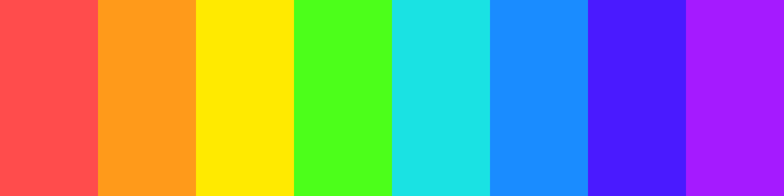 Here’s a vibrant 1970s rainbow color palette suitable for a black background, sorted by hue: