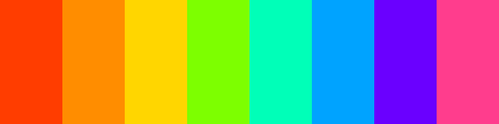 Hereβs a vibrant 1970s rainbow color palette sorted by hue, suitable for a black background and ending with pink.