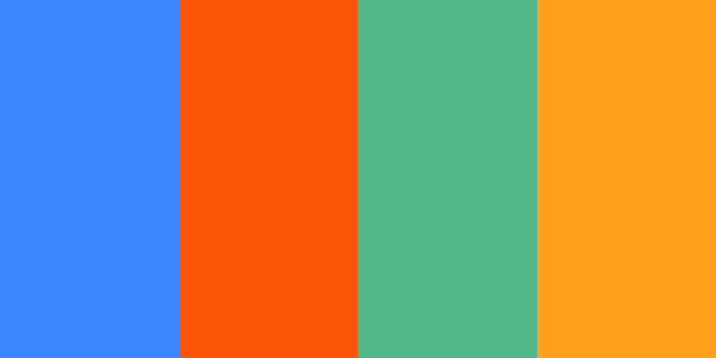 This palette features a vibrant and energetic mix of colors reminiscent of a lively summer day, combining cool blues with warm oranges and greens.