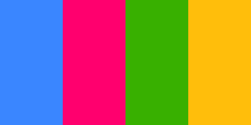 This palette, named βVibrant Energy,β features a dynamic combination of bright and lively colors. The Bright Blue ( #3A86FF ) provides a striking contrast to the Hot Pink ( #FF006E ), while the Fresh Green ( #38B000 ) adds a touch of nature. Completing the palette is Sunny Yellow ( #FFBE0B ), which brings warmth and optimism. Together, these colors create an energetic and playful visual experience.