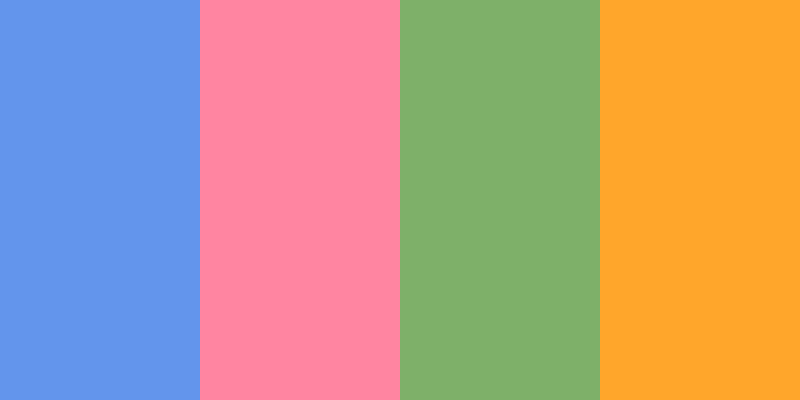 This palette features a vibrant blend of colors that evoke feelings of nature and warmth. The Cornflower Blue brings a refreshing feel, while the Light Pink adds a soft touch. The Medium Sea Green complements the palette with a natural element, and Sunset Orange introduces a vibrant pop of color.