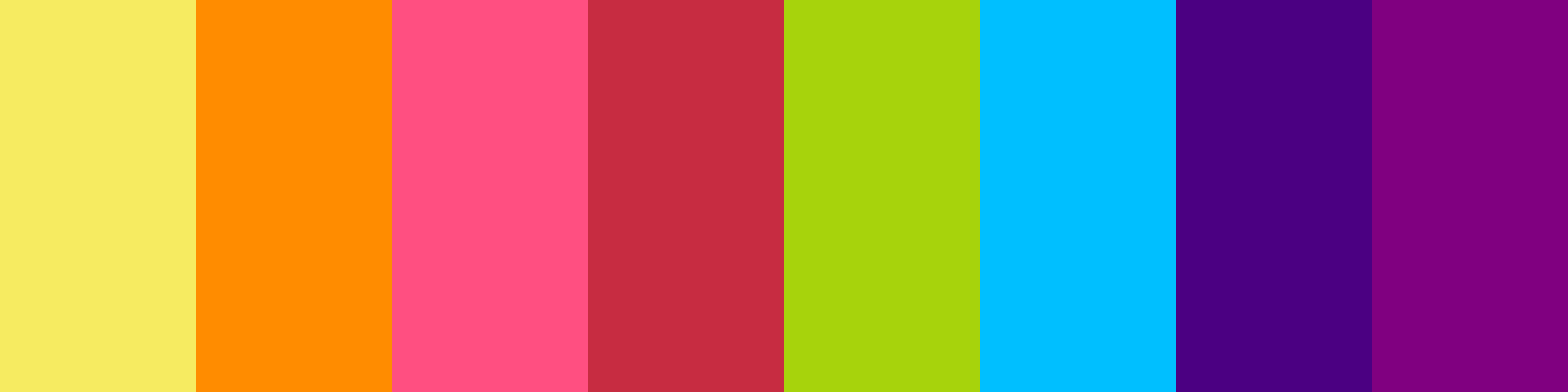 This palette captures the bold and eclectic spirit of the 1970s, reminiscent of psychedelic art, retro designs, and vibrant fashion trends. Each color represents the lively and free-spirited aesthetics of that decade.