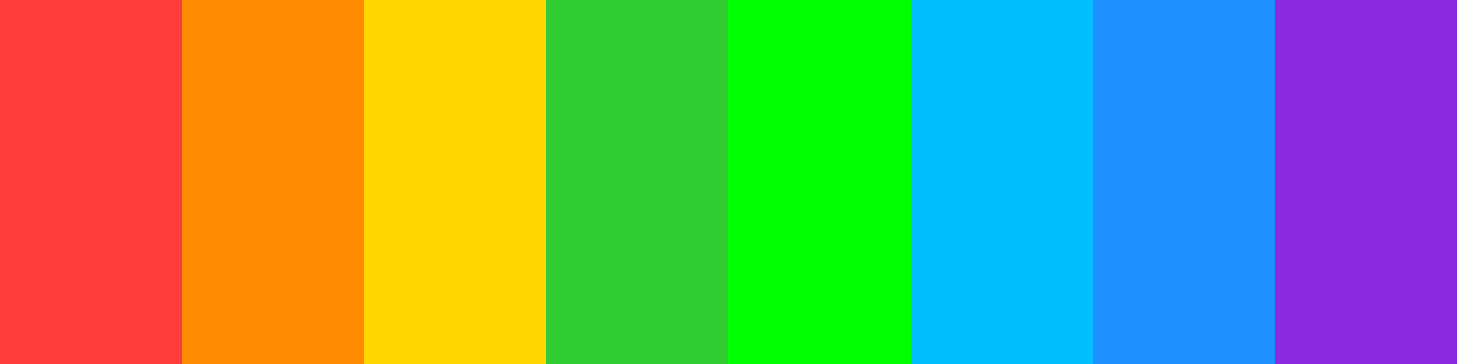 Here is a vibrant color palette inspired by the 1970s rainbow theme, designed to stand out against a solid black background: