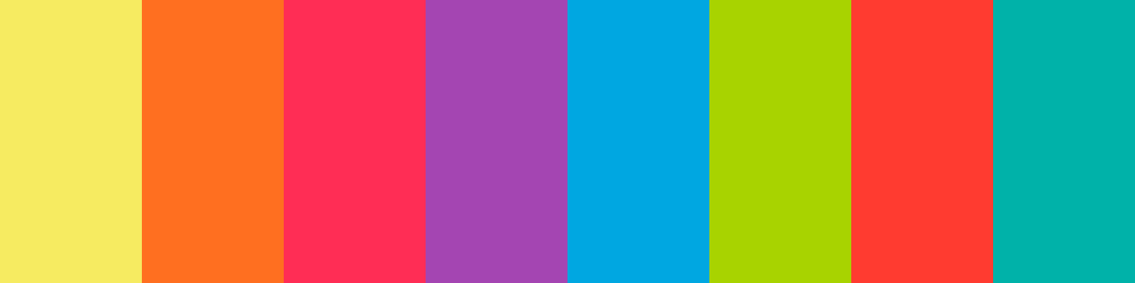 Here is a vibrant 70s rainbow color palette that features 8 colors designed for high visibility against a black background.