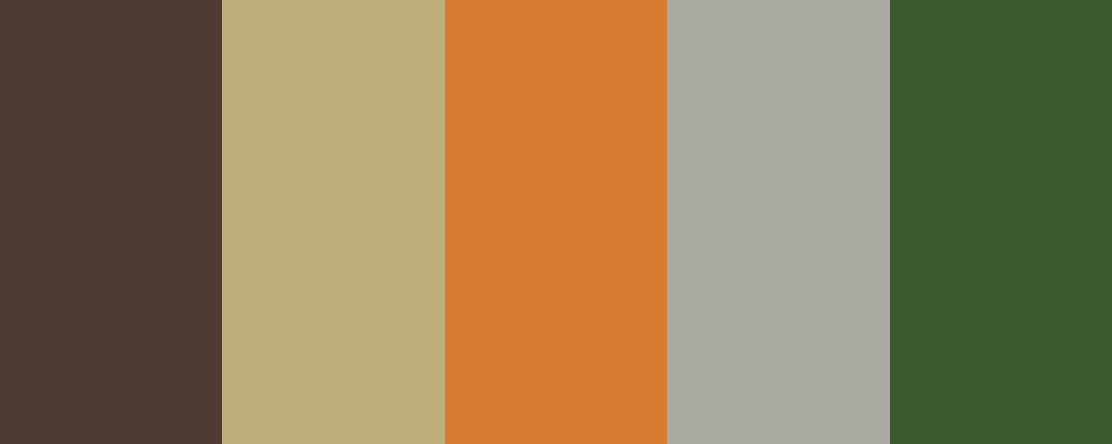 This palette captures the essence of autumn with earthy tones of brown and orange, complemented by the soft gray of evening light and hints of green from nature.