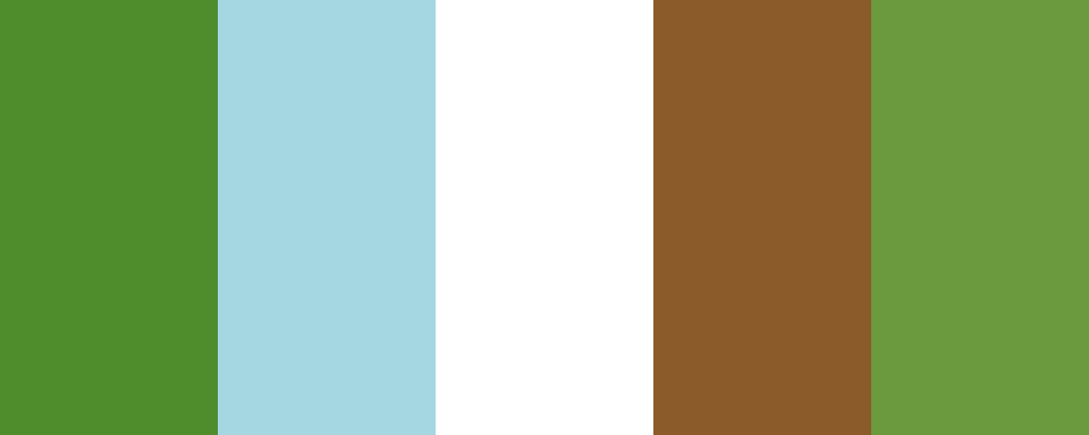 This palette combines earthy greens with tranquil blues and whites, reflecting the natural beauty of an old pond setting.