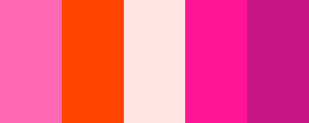 This palette reflects the vibrant pink hair and striking red eyes of the character, complemented by a soft skin tone, a lively lip color, and a matching outfit color.