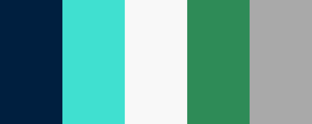 This palette combines the deep richness of dark navy with the vibrant energy of turquoise, balanced by soft white and garden-inspired greens. The muted gray adds a touch of sophistication while keeping the overall feel light and inviting.