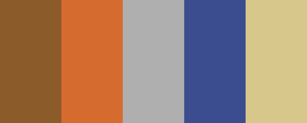 This palette captures the essence of an autumn evening with its rich browns, warm oranges, and cool blues, alongside hints of gold that reflect the fading sunlight.
