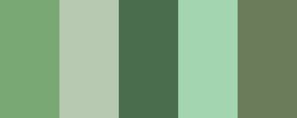 Here’s a color palette inspired by the color you provided ( #7AA874 ), which resembles a calming green shade. This palette includes complementary and analogous colors that create a harmonious look.