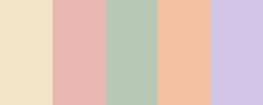 This palette features a soft cream as the base color, complemented by dusty rose, sage green, muted peach, and lavender mist. Together, these colors evoke a warm and elegant aesthetic, perfect for a serene and cozy atmosphere.