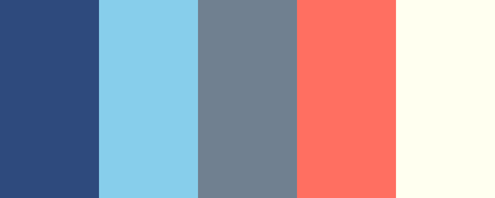 This palette, β€œDeep Blue Harmony,” emphasizes the tranquil yet powerful essence of deep blue, complemented by lighter shades of blue, a neutral gray, a warm coral, and a soft ivory for balance.