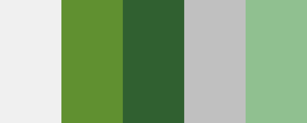 This palette, titled “Nature’s Greens and Grays,” features a soothing combination of various shades of green complemented by light and silver grays, reminiscent of a serene forest landscape.