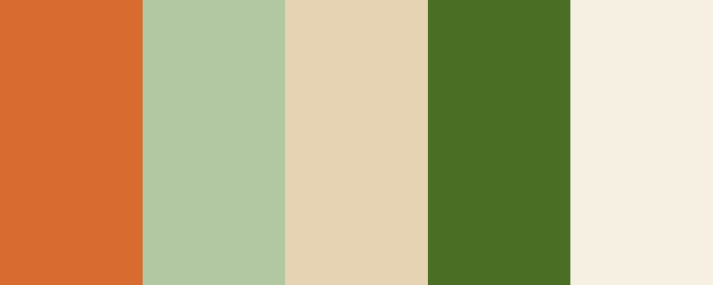 This palette combines warm terracotta tones with calming greens and neutral beige to create a sophisticated and inviting atmosphere in your bathroom.