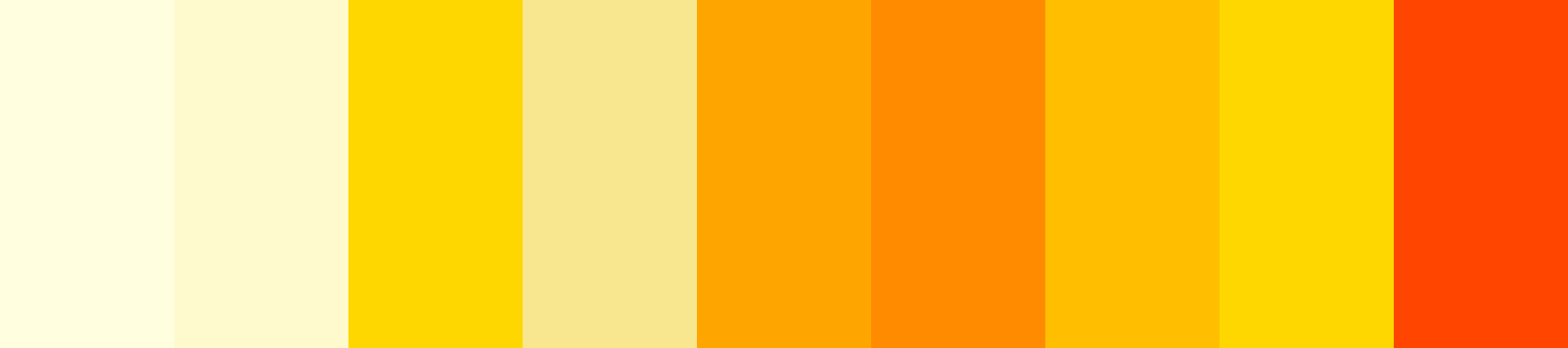 Here is a color palette based on your request for Orange-Yellow colors sorted by hue: