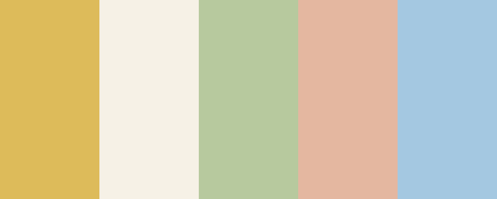 The “Daisy Heart” palette captures the essence of a daisy’s heart with a soft, low-saturation yellow as its cornerstone. Complemented by creamy white for brightness, muted olive green for a touch of nature, dusty rose for warmth, and pale sky blue for a refreshing contrast, this palette evokes a serene and cheerful atmosphere.