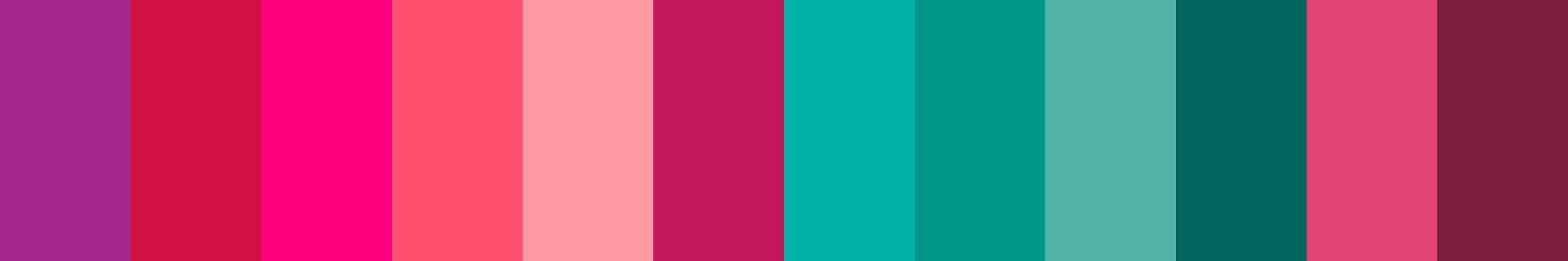 Create a palette using red-violet, pink, and Teal. With a bright, medium, light and dark version of each color. Please gave a much variety Bertram each one ss possible