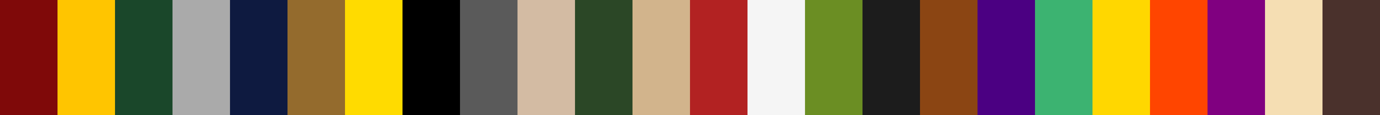 Creating a comprehensive set of 100 colors based on different pastel themes inspired by Harry Potter, neutral pastels, earthy pastels, and dark pastels. Here is the breakdown of the color palettes: ### Harry Potter Color Palette (25 colors) 1. Gryffindor Red (#7F0909) 2. Gryffindor Gold (#FFC500) 3. Slytherin Green (#1A472A) 4. Slytherin Silver (#AAAAAA) 5. Ravenclaw Blue (#0E1A40) 6. Ravenclaw Bronze (#946B2D) 7. Hufflepuff Yellow (#FFDB00) 8. Hufflepuff Black (#000000) 9. Hogwarts Gray (#5A5A5A) 10. Sorting Hat Brown (#4A312C) 11. House Elf Beige (#D3BBA3) 12. Forbidden Forest Green (#2B4726) 13. Butterbeer Cream (#D2B48C) 14. Phoenix Feather Red (#B22222) 15. Unicorn Hair White (#F5F5F5) 16. Dragon Scales Green (#6B8E23) 17. Thestral Black (#1C1C1C) 18. Mandrake Root Brown (#8B4513) 19. Polyjuice Potion Purple (#4B0082) 20. Quidditch Pitch Green (#3CB371) 21. Bertie Bott’s Every Flavor Beans Yellow (#FFD700) 22. Fawkes Flame Orange (#FF4500) 23. Knight Bus Purple (#800080) 24. Marauder’s Map Parchment (#F5DEB3) 25. Golden Snitch Gold (#FFD700) ### Neutral Pastels (25 colors) 1. Misty Rose (#FFE4E1) 2. Seashell (#FFF5EE) 3. Old Lace (#FDF5E6) 4. Ivory (#FFFFF0) 5. Honeydew (#F0FFF0) 6. Lavender Blush (#FFF0F5) 7. Alice Blue (#F0F8FF) 8. White Smoke (#F5F5F5) 9. Beige (#F5F5DC) 10. Linen (#FAF0E6) 11. Lavender (#E6E6FA) 12. Ghost White (#F8F8FF) 13. Mint Cream (#F5FFFA) 14. Azure (#F0FFFF) 15. Snow (#FFFAFA) 16. Floral White (#FFFAF0) 17. Cornsilk (#FFF8DC) 18. Blanched Almond (#FFEBCD) 19. Bisque (#FFE4C4) 20. Antique White (#FAEBD7) 21. Papaya Whip (#FFEFD5) 22. Peach Puff (#FFDAB9) 23. Gainsboro (#DCDCDC) 24. Light Gray (#D3D3D3) 25. Pale Turquoise (#AFEEEE) ### Earthy Pastels (25 colors) 1. Desert Sand (#EDC9AF) 2. Sand Dune (#967117) 3. Camel (#C19A6B) 4. Khaki (#F0E68C) 5. Dark Khaki (#BDB76B) 6. Burlywood (#DEB887) 7. Peru (#CD853F) 8. Rosy Brown (#BC8F8F) 9. Tan (#D2B48C) 10. Sandy Brown (#F4A460) 11. Wheat (#F5DEB3) 12. Pale Goldenrod (#EEE8AA) 13. Light Goldenrod Yellow (#FAFAD2) 14. Light Yellow (#FFFFE0) 15. Lemon Chiffon (#FFFACD) 16. Light Grayish Brown (#BDB76B) 17. Dust Storm (#E5CCC9) 18. Earth Yellow (#E1A95F) 19. Ecru (#C2B280) 20. Sand (#C2B280) 21. Feldspar (#D19275) 22. Pastel Brown (#836953) 23. Bone (#E3DAC9) 24. Coffee (#6F4E37) 25. Eggshell (#F0EAD6) ### Dark Pastels (25 colors) 1. Midnight Blue (#191970) 2. Dark Slate Blue (#483D8B) 3. Dark Orchid (#9932CC) 4. Dark Violet (#9400D3) 5. Dark Magenta (#8B008B) 6. Dark Red (#8B0000) 7. Dark Orange (#FF8C00) 8. Dark Goldenrod (#B8860B) 9. Dark Khaki (#BDB76B) 10. Dark Olive Green (#556B2F) 11. Dark Sea Green (#8FBC8F) 12. Dark Slate Gray (#2F4F4F) 13. Dark Green (#006400) 14. Dark Cyan (#008B8B) 15. Dark Turquoise (#00CED1) 16. Dark Blue (#00008B) 17. Dark Brown (#654321) 18. Dark Gray (#A9A9A9) 19. Dim Gray (#696969) 20. Dark Salmon (#E9967A) 21. Dark Sienna (#3C1414) 22. Dark Chestnut (#986960) 23. Dark Moss Green (#4A5D23) 24. Dark Burnt Umber (#8A3324) 25. Dark Orchid (#9932CC) I will now generate and visualize these color palettes.