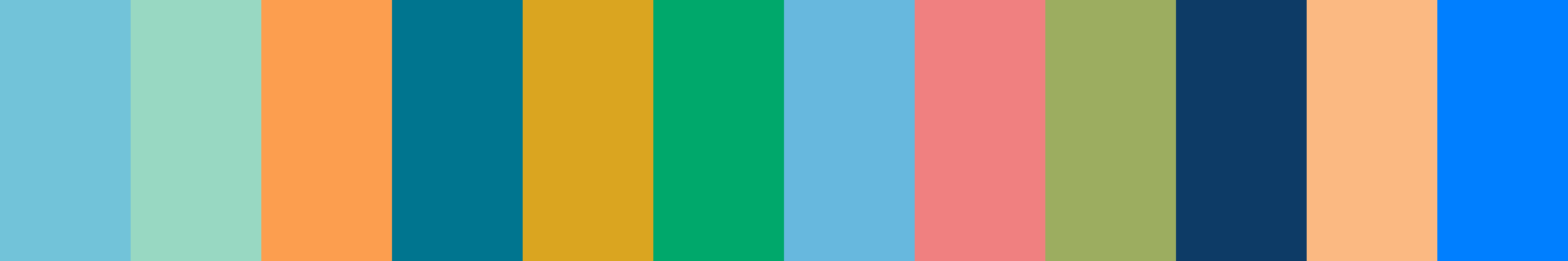 Here is a color palette inspired by a harmonious blend of blue, green, and orange hues, perfect for creating vibrant, energetic designs with a natural feel. This palette is versatile, suitable for a wide range of applications including graphic design, interior decor, and digital art, offering a refreshing balance between cool and warm tones.
