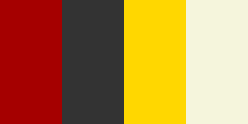 <Deep Warm Elegance> 1. Deep Red #A50000 A Rich, Bold Red That Evokes Feelings Of Passion And Strength. 2. Charcoal #333333 A Dark, Sophisticated Gray That Provides Depth And Contrast. 3. Golden Yellow #Ffd700 A Vibrant, Warm Yellow That Adds A Touch Of Brightness And Cheerfulness. 4. Off White #F5 F5 Dc A Soft, Neutral Beige That Brings Warmth And Lightness To The Palette.