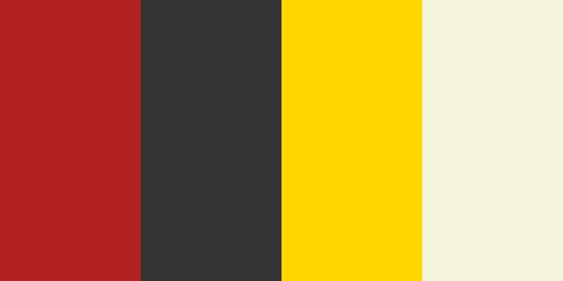 Primary Color: Deep Red (#B22222) Secondary Color: Charcoal/Dark Gray (#333333) Accent Color: Golden Yellow (#Ffd700) Background Color: Off White/Light Beige (#F5 F5 Dc)